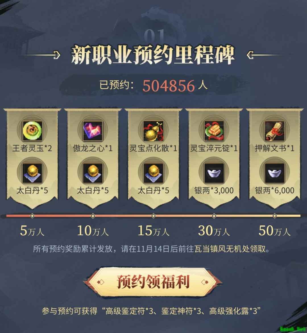 这里再给稻米们报个喜——新职业活动预约人数已经火箭般冲破50万大关啦!看来大家都憋着劲儿要体验新版本的内容呢!