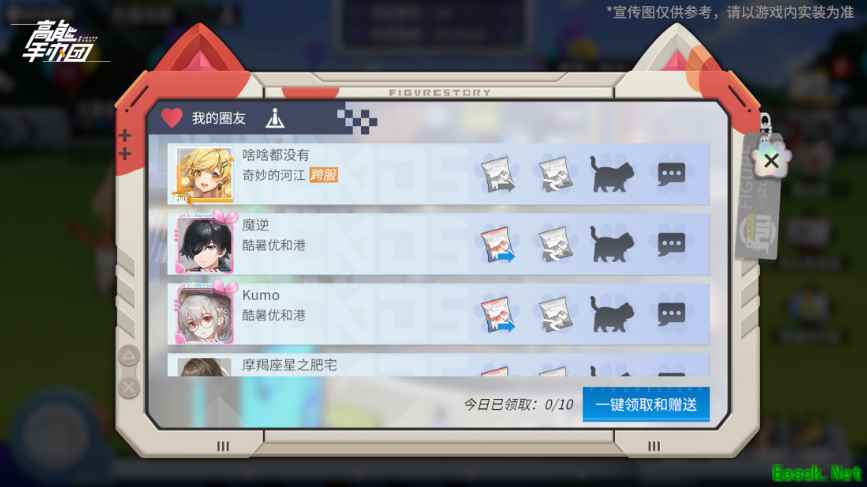 好友之间也是可以互相赠送道具的。点击猫友圈,可以与好友相互赠送、领取“冻干零食”道具。“冻干零食”也是可以小幅增加小猫咪奔跑里程的哦!每位收藏家每天可以赠送“冻干零食”给30位好友,同时可以领取5次好友的赠送。