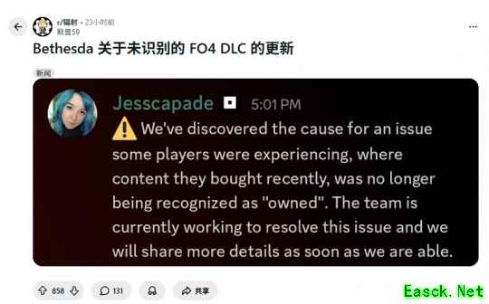 据B社社区经理Jessica Clark在Discord上发布的信息,团队已确认了导致玩家已购DLC被误判为“未拥有”的问题原因。Clark表示:“我们已发现部分玩家近期购买的内容未被识别为‘已拥有’的原因。团队目前正在修复该问题,并将在第一时间公布更多进展。”
