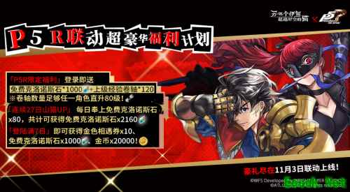 紧随这次联动内容,11月3日也将开启另一个伊甸一周年庆典活动,史无前例海量福利登入即可领取!「4160免费克洛诺斯石」外加「10连金色相遇券」和任意角色「直升80级秘传卷轴」,总计价值超过800人民币。