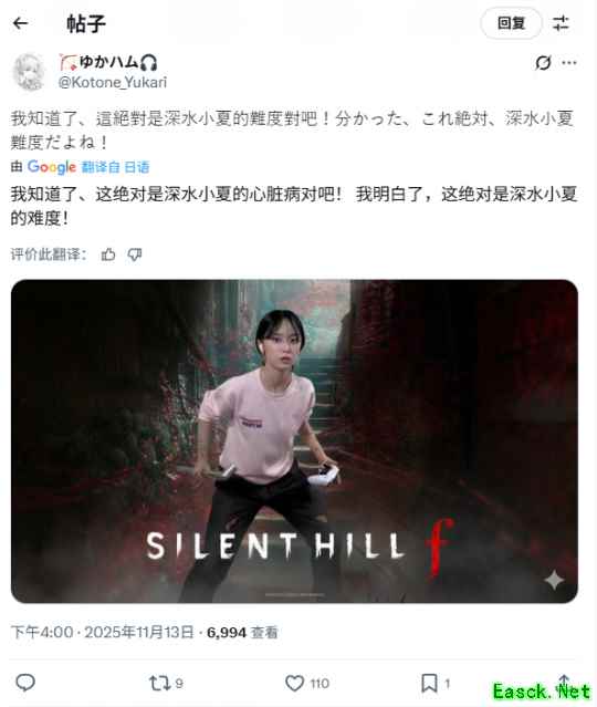 《寂静岭 f》推简单难度 网友玩梗:加藤小夏模式来了!