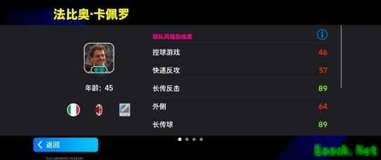 而在实况赛场上,卡佩罗不仅有着89分长传反击和长传球风格,以及【射门+1 防守意识+1】的增能属性,还搭载了【过顶长传A】心有灵犀技能。玩家可以设置比赛风格为【指挥官】的后腰球员作为核心球员,比赛风格为【偷猎者】的中锋球员为关键球员。当核心球员在己方半场持球时,关键球员会积极前插。核心球员传给关键球员的直传球和高空直传球质量,以及接球方的停球精准度均会提升!