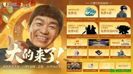 火影忍者手游十周年限时点券商店将于11月16日正式开启,3000限时点券免费领,商店内不仅可兑换全新A忍纲手【妖怪奇谭】,还返场了超多人气忍者,更有限定招募券,超影服务,战力道具等可选择兑换,敬请期待。