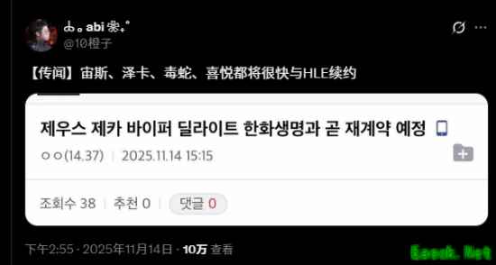 随着2025赛季《英雄联盟》职业联赛落下帷幕,转会期随即成为焦点。对于今年打入世界赛八强LCK战队HLE而言,赛后面临的阵容变动压力并不小——除了打野选手Peanut退役将服兵役外,队内其余四名主力Zeus、Zeka、Viper与Delight的合同也都将在本月17日正式到期。