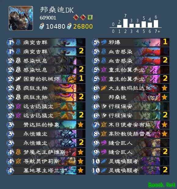 虽然血虫感染和火龙削了,但是节奏DK还是很能打的,至少以前是跟任务术和节奏贼三分天下的卡组,它正在慢慢复苏。