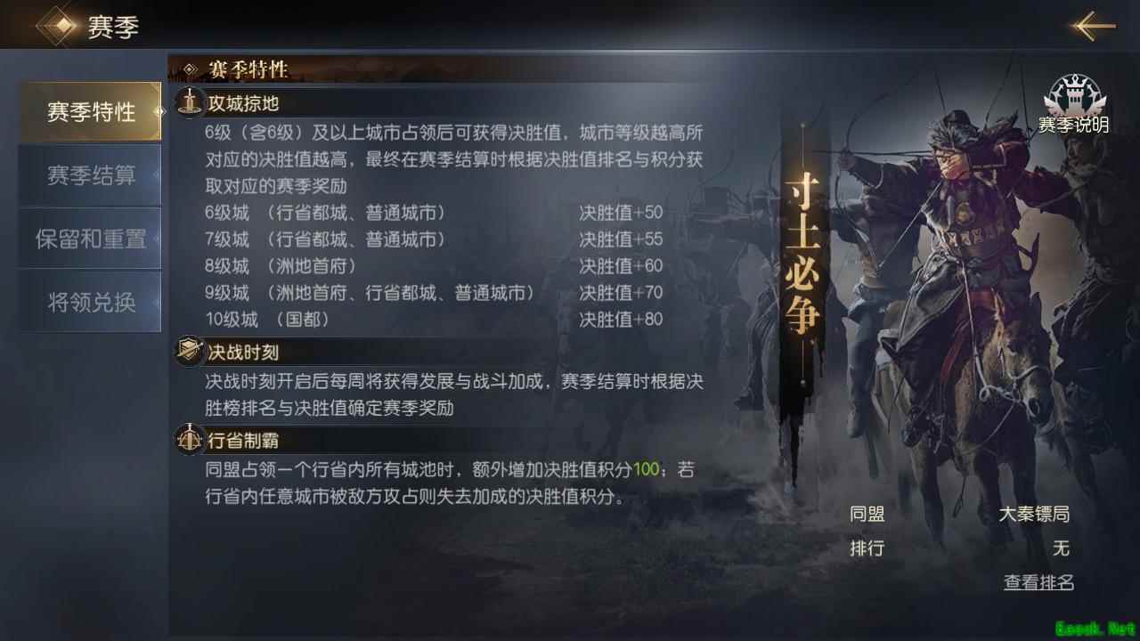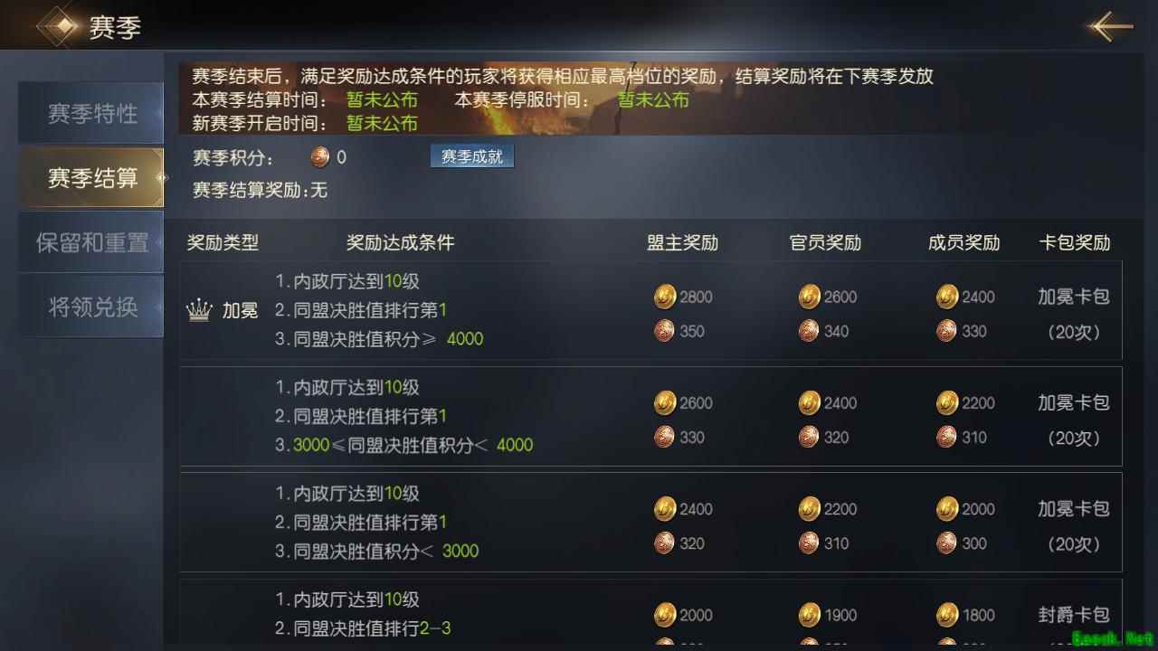 赛季结算时,系统将根据同盟决胜值排名以及所获得的决胜值分值,来决定同盟获得的奖励内容。这种设定,能让有实力、有谋略的同盟(不论大小)都有机会分到一杯羹。同时,这种设定更符合策略游戏的要求。