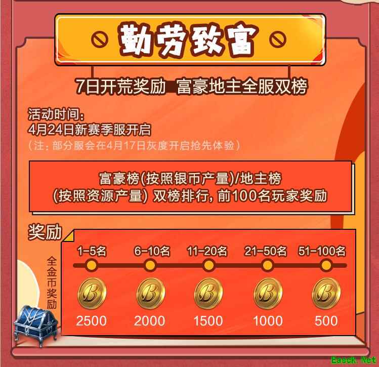 活动时间:4月24日新赛季服开启(随服务器进程开启)