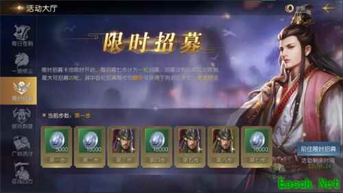 福利活动【七步卡包】将于今日10:00起限时上线24小时(随服务器进程开放,各个服务器开服24小时后开放),全服玩家参与活动就有机会赢得五星将领、五星材料将领、四星材料将领等惊喜福利!在本活动中,每7次抽卡为一个循环,每次抽卡均为5连抽。其中,玩家的第1次、第2次抽卡为半价抽卡;第3次抽卡免费;第7次抽卡为五连必得五星将领。