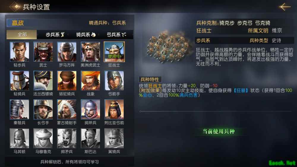 在这个大背景下,游戏实现了自由行军,让“围堵截击”成为现实。玩家在行军过程中可以通过“中止”命令使得部队停留原地,可重新对部队进行新指令;通过行军、中止等指令的结合,便能够灵活操控部队,出其不意打击敌人。同时,游戏还实现了“兵种相克”,让以弱克强不再是幻想。游戏在三大基础兵种,步、骑、弓之上,衍生出十余种多文明兵种,给予玩家更多的战略选择和真实代入感。