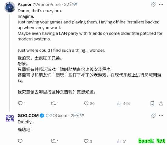 面对众多网站崩溃,GOG官方发文:“我去,要是这种日子还能完全断网玩所有游戏该多好!”