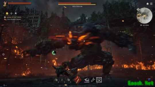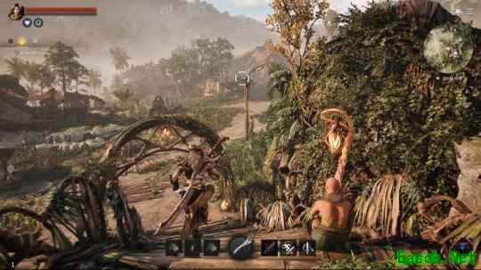 《地平线》原作是一款使用弓箭佔比几乎80%-90%的游戏。但只用弓和矛来套用在MMORPG上,在概念上不太合理。所以他们初期在和索尼(Guerrilla)进行协商时,将比重定为50%的近距离战斗与50%的远距离战斗。除了像矛和弓之外,团队还制作了近距离六种、远距离六种武器。除预告中看到的大剑、双剑,远距离武器不只有弓,还有像弩弓之类的独特武器。