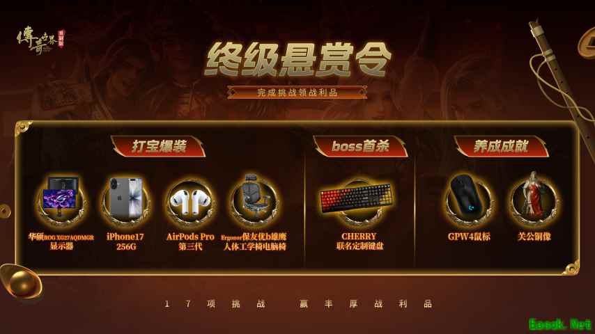 为引爆开服竞技热情,《传奇世界重制版》将在公测后开启"终极悬赏令"活动。活动设置打宝爆装、BOSS首杀、养成成就三大核心赛道——首位获得骨玉、龙纹、裁决等顶级装备的玩家,将赢取华硕电竞显示器、iPhone17、AirPods Pro、人体工学电脑椅等大奖。除装备赛道外,BOSS首杀与养成成就同样设有丰厚奖励,其中包括关帝祖庙的开光铜像大奖,确保各类玩家都能在开服热潮中斩获惊喜。