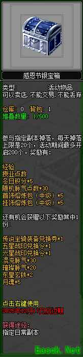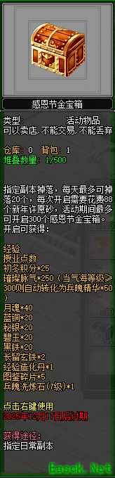大侠通关副本、幻境等玩法会额外掉落感恩节银宝箱/金宝箱,每种宝箱每日最多获得20个,开启可得对应好礼。