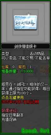 大侠参与副本、秘境等玩法还会额外掉落剑侠情缘银卡,每日获得上限100张。银卡可兑换首饰披风徽章强化点券、限定外观、装备材料,还支持额外购买银卡,助力大侠全面提升战力与颜值!