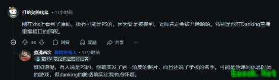 持怀疑态度的网友指出两点:一是教室墙上时钟的时间与比赛的实际进行时间对不上;二是直播中出现的主播danking偶尔会爆粗口,被普遍认为不适合中学生观看,因此学校不太可能放行这样的内容。