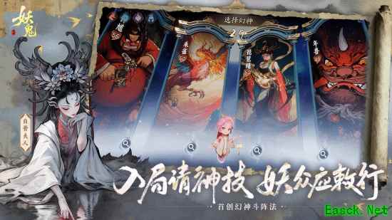 游戏特色的“幻神助阵”机制,汇聚东方神魔体系中家喻户晓的妖鬼志怪,使其从传说走入战局,成为玩家可召唤的强大助力。开局时,玩家可从四位幻神中请出一位入局助阵,这些“大幻神”各具神通——有的可亲临棋场,以神威技能颠覆对局;有的则能与在场棋子产生共鸣,提供战略增益。