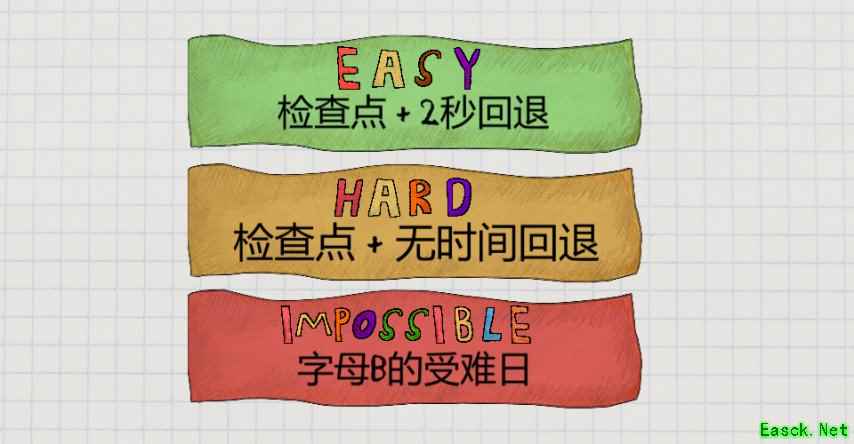 不过仁慈的是,开发者设定了三种不同的难度,在简单和困难难度下,游戏每隔一小段就会有一个存档点,所以每次看到CHECKPOINT这几个巨大的字母出现时,确实很能让人松一口气。