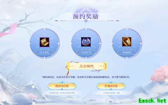 预约成功后,玩家可在冰雪节服:洛水听雪开服后领取到该服角色,