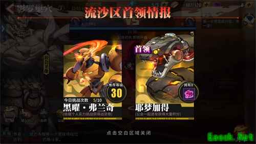 格斗家可参与首领挑战【每日5:00-20:00开放】。弗兰奇每日挑战上限10次,12点体力挑战1次,每日重置;耶梦加得无挑战次数限制,需要消耗门票。