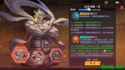 格斗家以公会为单位利用副本BOSS掉落奖励建造公会圣像,圣像成功建造后可对参与影罗巢穴的玩家进行具体场景的技能强化。