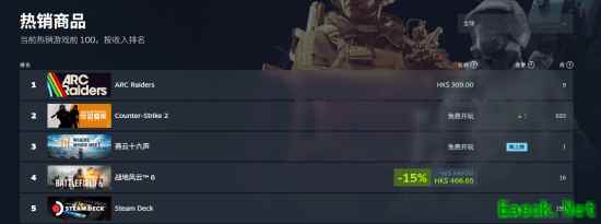 此外,本作仍然稳居全球热销榜第三位,超越了热门射击游戏《战地6》,以及Steam掌机SteamDeck。