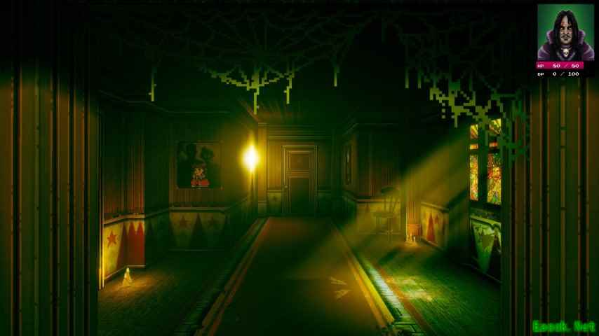 在探索过程中,玩家会进入一个外表温馨却充满不安氛围的儿童楼层。这里以纯真失落为核心主题,将童趣外表与心理创伤通过视觉进行深度捆绑。鲜亮原色被压暗为晦绿与褐红,像童年记忆中发霉的气味。本应柔软的玩具以僵硬、非人的姿态凝视玩家,让玩家犹如童话坠入梦魇。