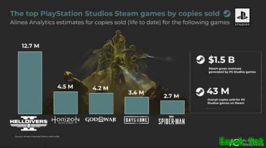 据Alinea Analytics数据统计,PlayStation在Steam平台累计销量已达4300万份。其中《绝地潜兵2》以超过1270万份的销量成为历史最畅销作品,其后依次为《地平线:零之曙光》《战神》《往日不再》及《漫威蜘蛛侠》的重制版与复刻版。值得关注的是,所有畅销作品均为发布多年的经典游戏,新近登陆Steam的作品均未产生显著收益。