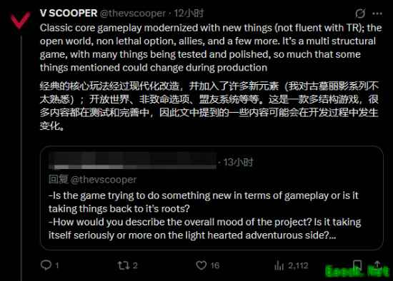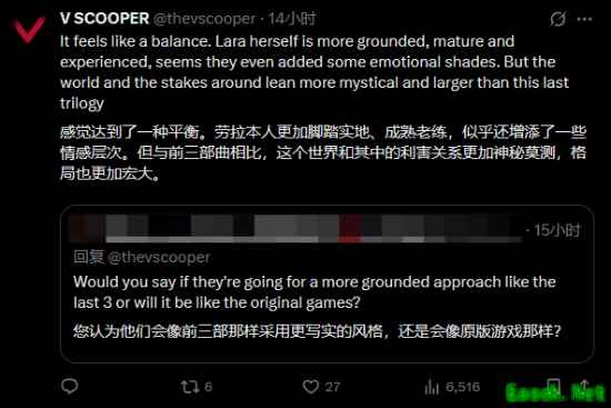 知名消息人士V SCOOPER近日在个人社交媒体上开启了一次简短的粉丝问答,简要回答了诸多关于下一部《古墓丽影》的信息。不过他也明确强调,他没有看到任何实际的游戏画面或实机演示之类的内容,只是对开发团队内部的大方向有所耳闻。