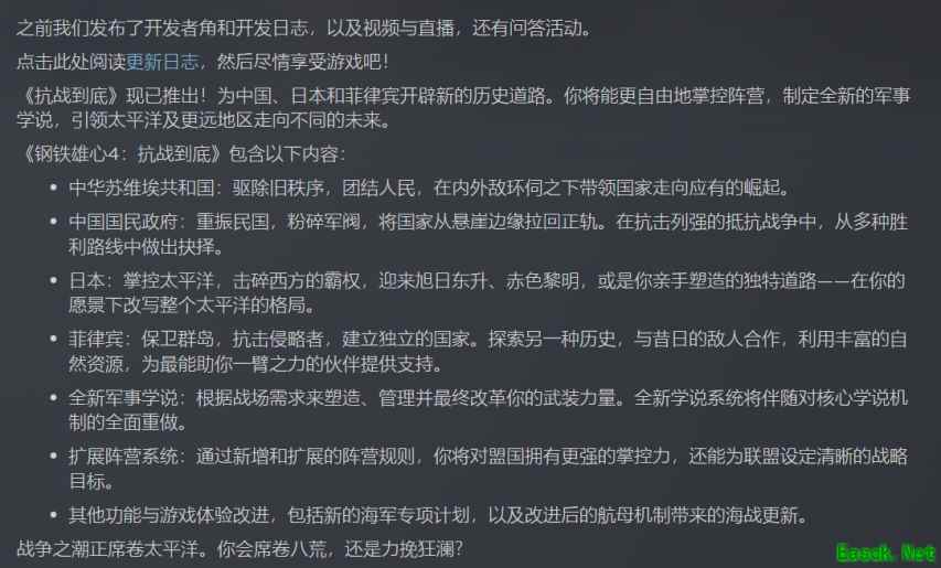 《钢铁雄心4》发布全新DLC"抗战到底",扩展太平洋战场内容