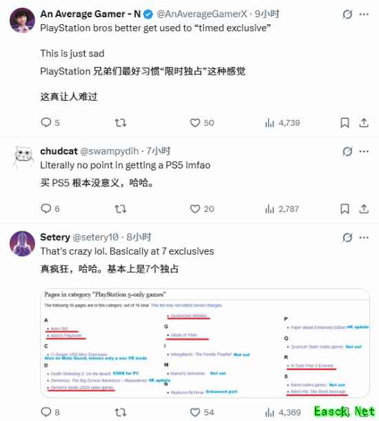 随后这则消息引发国外玩家热议,玩家表示独占时间是否太短了,那这样买PS5/PS6还有什么意义,不过也有玩家比较期待这款游戏登上PC平台,希望能获得更好的游戏表现。