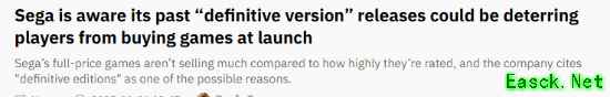 公司也指出,玩家预期未来会推出“最终版”(Definitive Edition)可能导致他们对首发购买更为犹豫。世嘉发言人表示:“虽然我们仍无法精确找出销量不达预期的具体原因,但我们认为问题也出在营销上——我们未能充分向用户传达游戏的吸引力。”