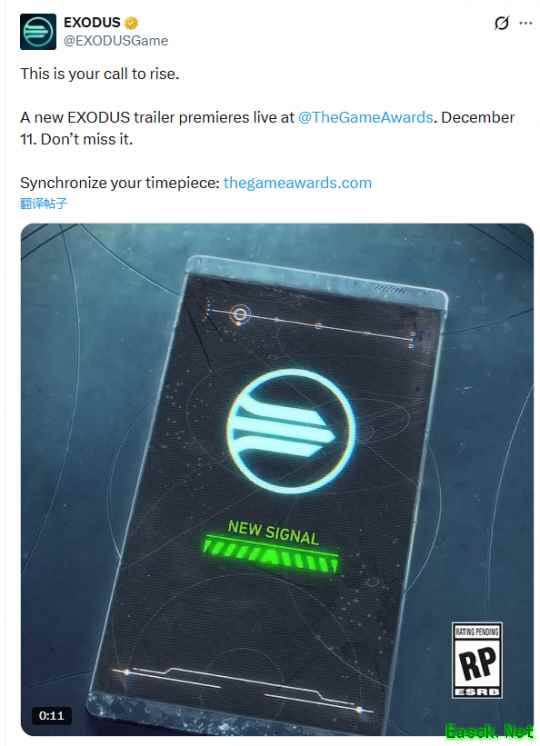 由前《质量效应》核心成员组建的Archetype Entertainment工作室宣布,其3A科幻射击新作《Exodus》的全新故事预告片将于2025年12月11日的TGA颁奖典礼上首次公开,本作预计将于2026年正式发售。