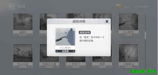 奇奇怪怪的各种成就也在游戏过程中带来了更多的新奇感。例如在第一关的豪宅,进入第一扇门后,向左直接跳到对岸根本不用开门,然后就会跳出一个“小心有坑!”的成就。尝试一些不落俗套的行为方式,说不定就可以解锁一些有趣的成就,看着被填满的奖杯感觉十分舒适。既奖励了玩家,也鼓励玩家去发现更多新奇的方式从而在这款游戏找到独特的乐趣。