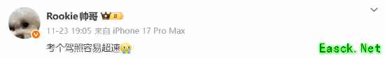 之前他就曾吐槽道:“考个驾照容易超速”。