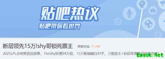 #断层领先15万!shy哥锁死票王#的话题也登上了贴吧热议榜。