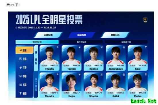 今日,《英雄联盟》全明星投票结束,TheShy 94万票断层领先再次当选第一,比第二的Jackeylove还高出15万票,第六次当选LPL最受欢迎选手。