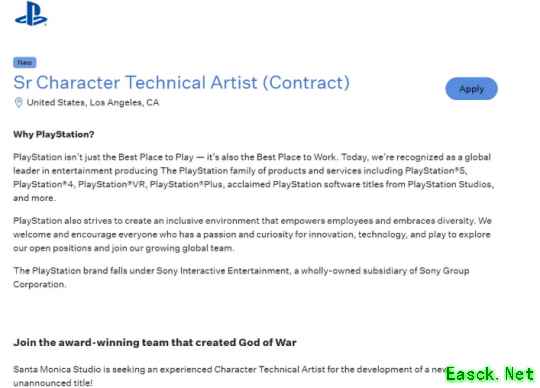 PlayStation近期发布的招聘岗位“高级角色技术美术”显示,该未公布的3A项目已进入中期制作阶段,并已超越概念与前期筹备阶段。通常来说,此类岗位会在概念阶段结束后加入团队。