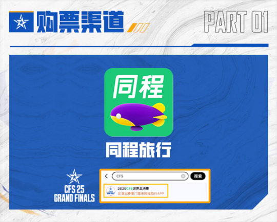 2025CFS世界总决赛将于12月12日至14日举行,共设三个比赛日,全面开放线下观赛。CFer可登录官方唯一指定购票平台---同程旅行APP,在搜索框中输入“CFS”,点击弹出的入口即可直达购票页面。