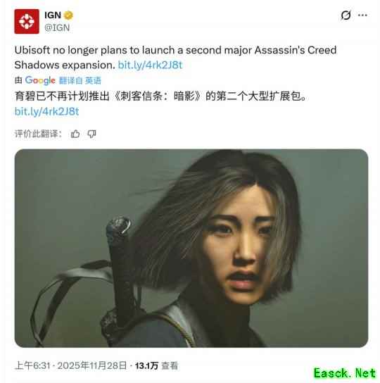 展望《刺客信条:影》,育碧仍计划推出后续内容。工作室打算保持“小规模、响应式”的更新策略,测试玩家对这种后续支持方式的反馈。