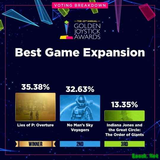 此外,最佳DLC的竞争同样激烈:《匹诺曹的谎言:序曲》以3%的微弱优势险胜《无人深空:航行者》。