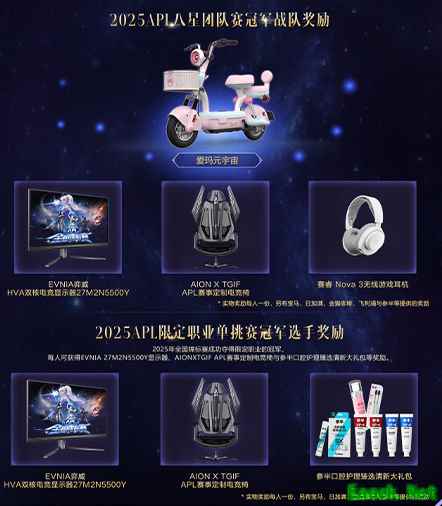 终极决战今日开启!全服瞩目的永恒之塔总决赛已经打响,总冠军战队将摘得2025APL冠军战队荣耀奖杯,战队成员每人可获得爱玛元宇宙、AIONXTGIF APL赛事定制电竞椅、EVNIA 27M2N5500Y显示器、赛睿Nova 3无线游戏耳机等赞助奖励。成功夺得限定职业的冠军,每人可获EVNIA27M2N5500Y显示器、AIONXTGIF APL赛事定制电竞椅与参半口腔护理臻选清新大礼包等奖励。这不仅是团队的荣耀角逐,更是个人实力的终极证明。无论是一直支持某支战队的铁杆粉丝,还是被某位选手超凡操作折服的见证者,此刻,都是我们凝聚信念的时刻。