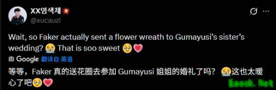 对此,网友们纷纷表示,即使Gumayusi已经离开T1了,但Faker选手依然为他姐姐的婚礼送上庆贺花篮,这真是太暖心了!“Faker是最伟大的人!”