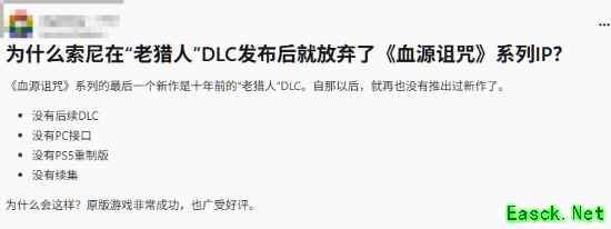 随着“老猎人”迎来发售10周年,近日Reddit论坛上有玩家发文询问,为什么《血源》这个IP会停滞10年之久?