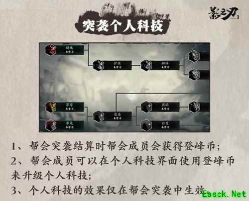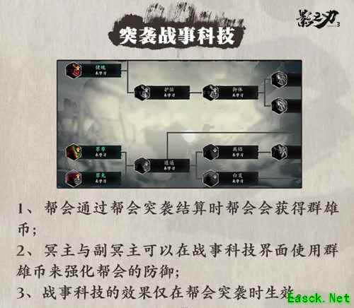 此外,帮会还将上线“战事科技”系统,使用帮会突袭中获得的“群雄币”,可升级战事科技,强化帮会突袭时本帮会的防御能力。帮会成员也可升级“个人科技”,提高自己在帮会突袭活动中的战斗能力。