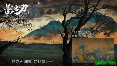 一直以来,《影之刃3》手游都致力于继承与发扬中华传统文化,用数字游戏的方式展示中华传统文化的魅力。作为一款风格独特的暗黑国风武侠动作手游,游戏参考了《千里江山图》、《清明上河图》等古风名画的色彩基调和散点透视技术,以赭石、朱砂等沉暗颜色为基础色调,用水墨国风展现江湖美景,并研发了相应的渲染技术用于表现该风格。在顶尖动画工作室的支持下,全面采用细腻和专业的武打动画作为主要表现手法,还原一个肃杀,冷酷的独特武林。