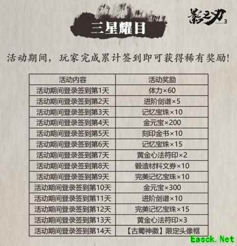 联动期间,只需要每日上线累计签到,就能免费领取联动限定头像框“古蜀神徽”、“黄金心法符印”、“刻印金书”等大量奖励!三星曜日,惊喜不断。