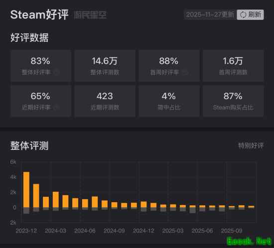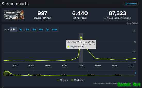 《Battlebit》此前在2023年开启抢先体验,游戏一经推出便获得数万好评,最高人数在线更是一举突破八万人。即便游戏更新进度缓慢,游戏目前在游民商城仍有83%的好评。
