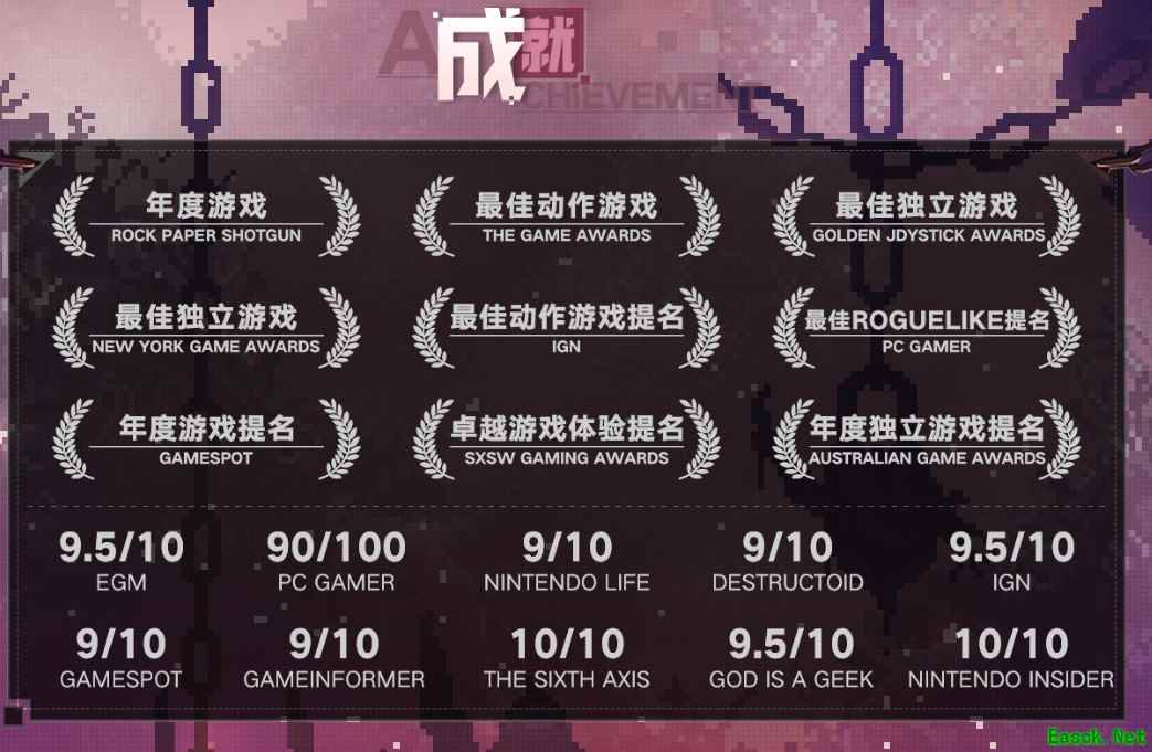 去年TGA上《死亡细胞》曾被评为年度最佳动作游戏,此外游戏还获得了外媒的一致好评: