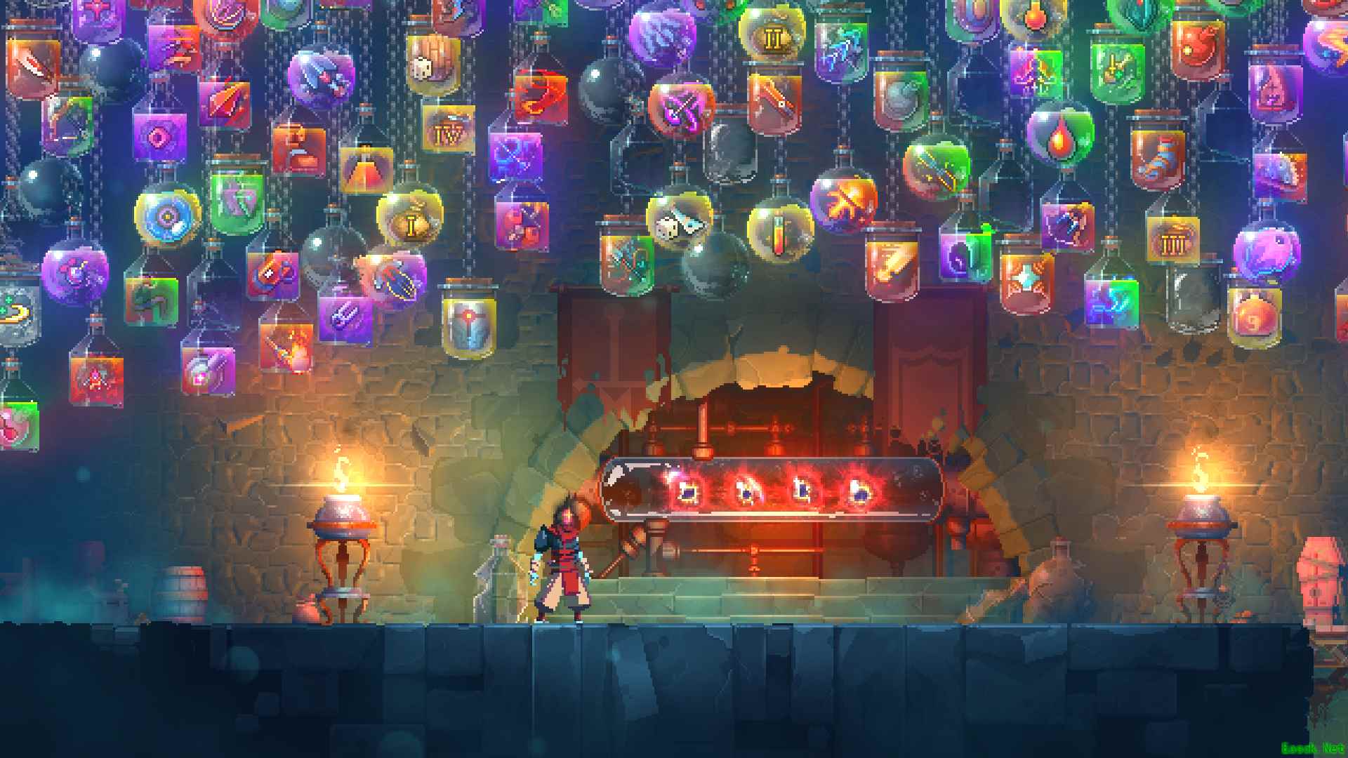《死亡细胞》讲述了一位失败的炼金炼金师化身为一群有意识的细胞,附着在一位死去战士的身体上,探索变化多端的神秘世界。主人公身上发生了什么?这个世界发生了什么?游戏没有给出准确的说明,但在场景中随处都埋下了蛛丝马迹。在令人肾上腺素爆表的战斗之余,找一找剧情彩蛋也是十分有趣的。