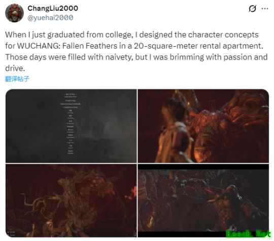 近日《明末:渊虚之羽》设计师刘畅发文推文,分享了自己的创作经历。他参与过《湮灭之潮》《燕云十六声》《永劫无间》《暗黑破坏神4》《万物契约》等游戏项目。